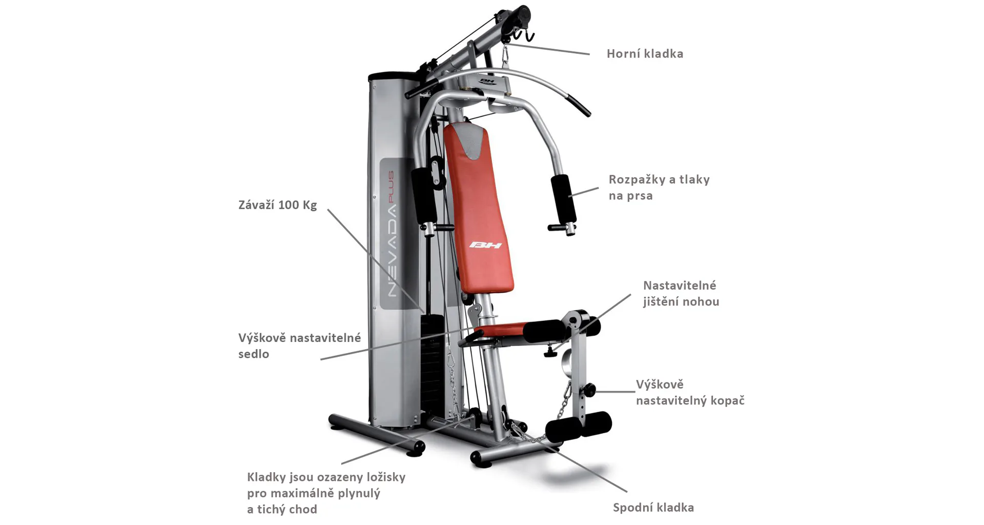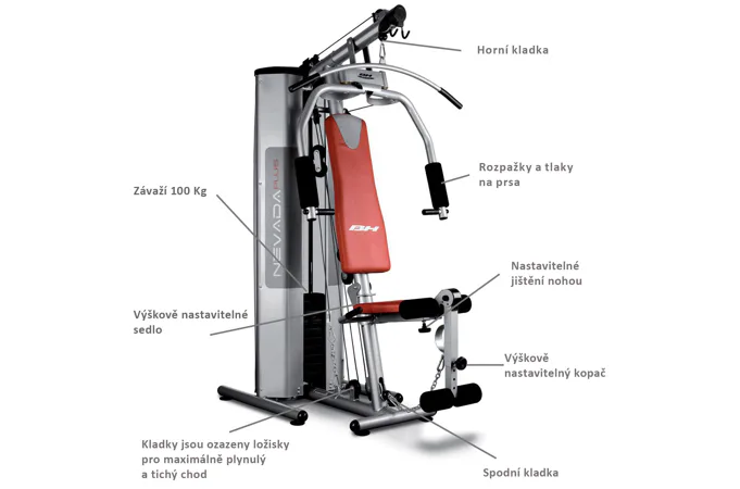 Multifunkční posilovací zařízení BH FITNESS Nevada Plus je určené pro pravidelné domácí využití, pro uživatele, kteří si chtějí na relativně malém prostoru dobře zacvičit, vytvarovat postavu a nabrat svalovou hmotu.