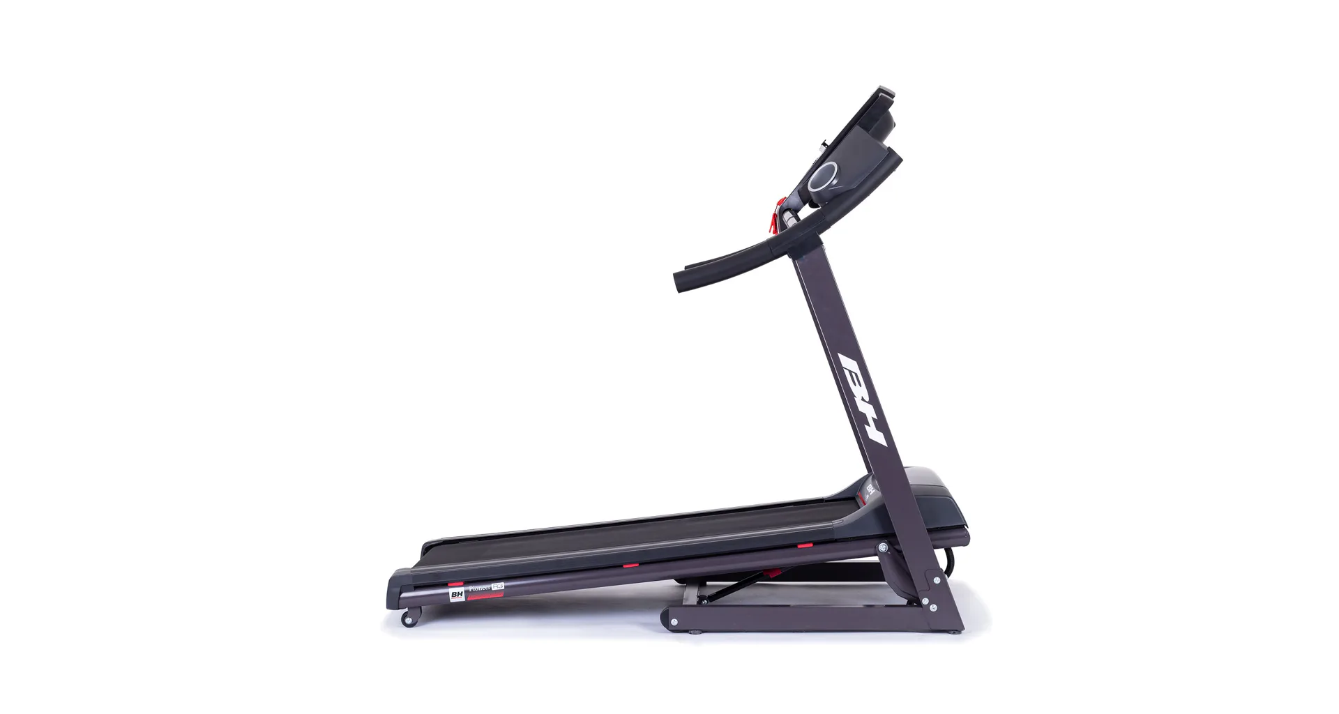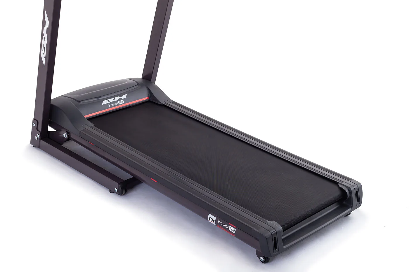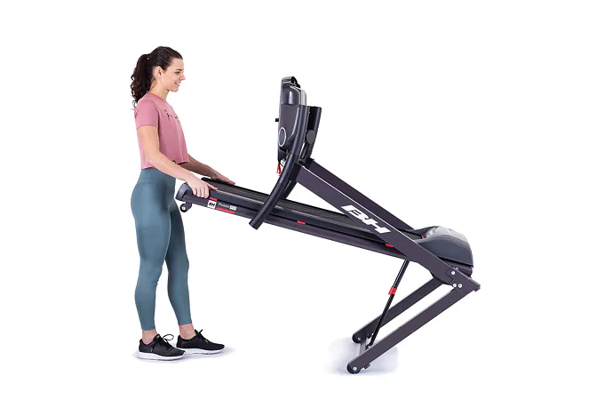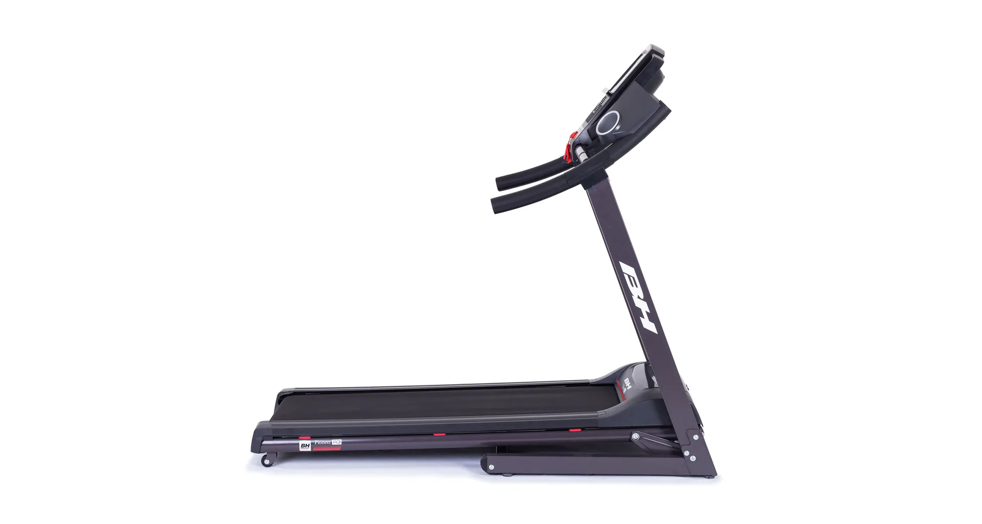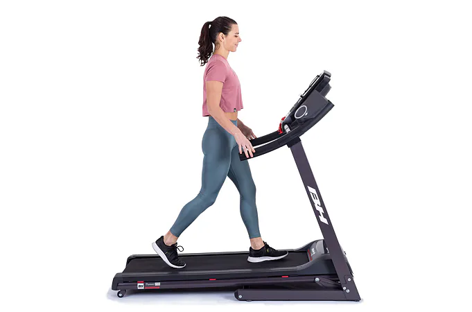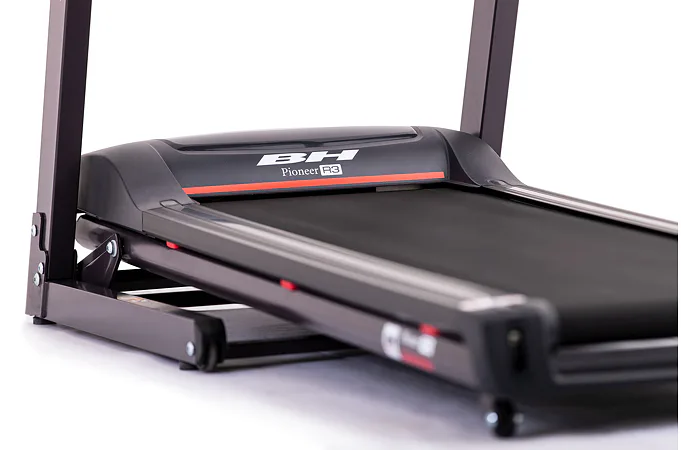 Běžecký pás BH Fitness PIONEER R3 disponuje počítačem s LCD displejem, držákem na lahev, senzory pro měření tepové frekvence a transportními kolečky. Po tréninku stroj snadno a rychle složíte do úsporné polohy.