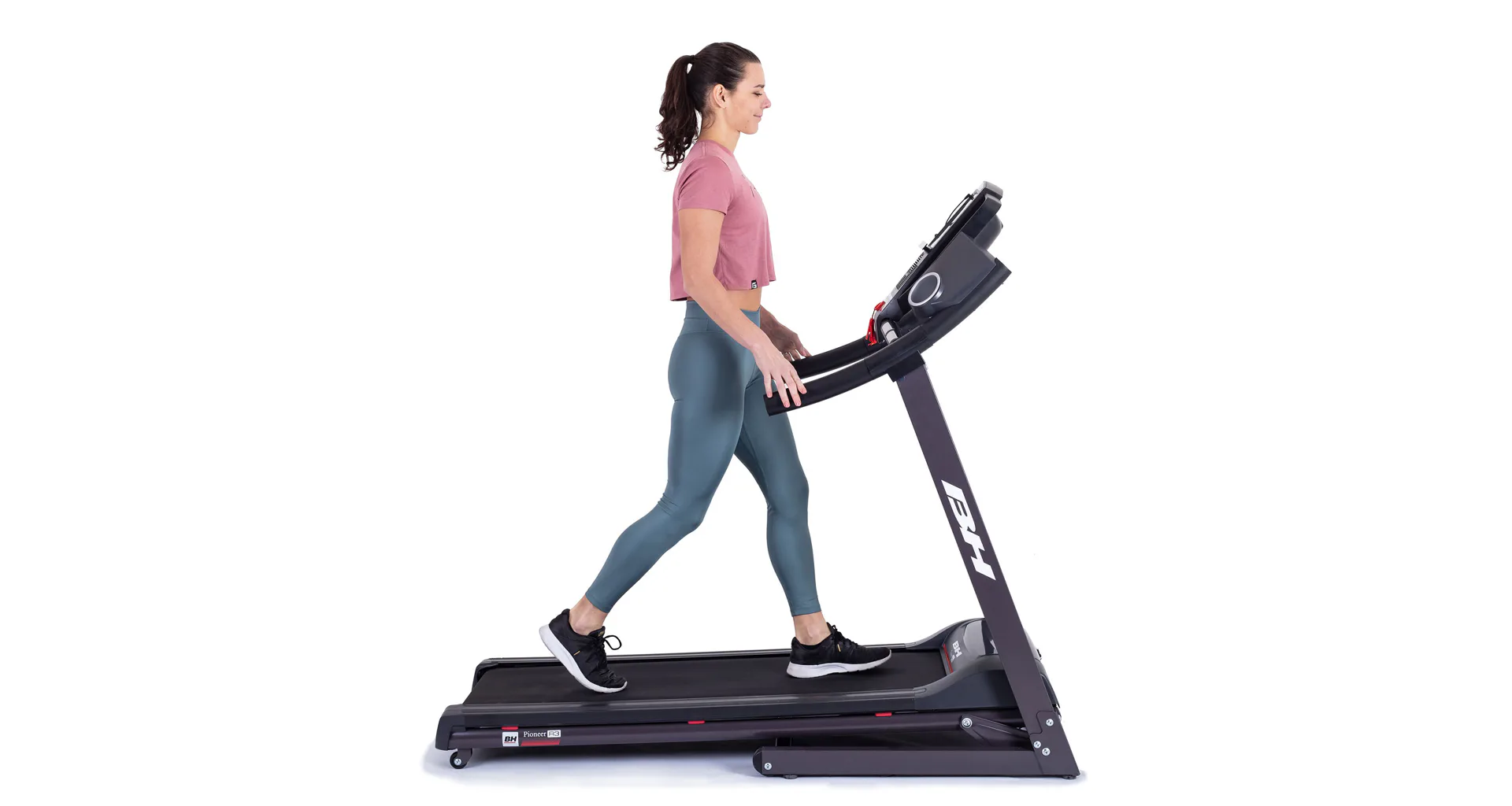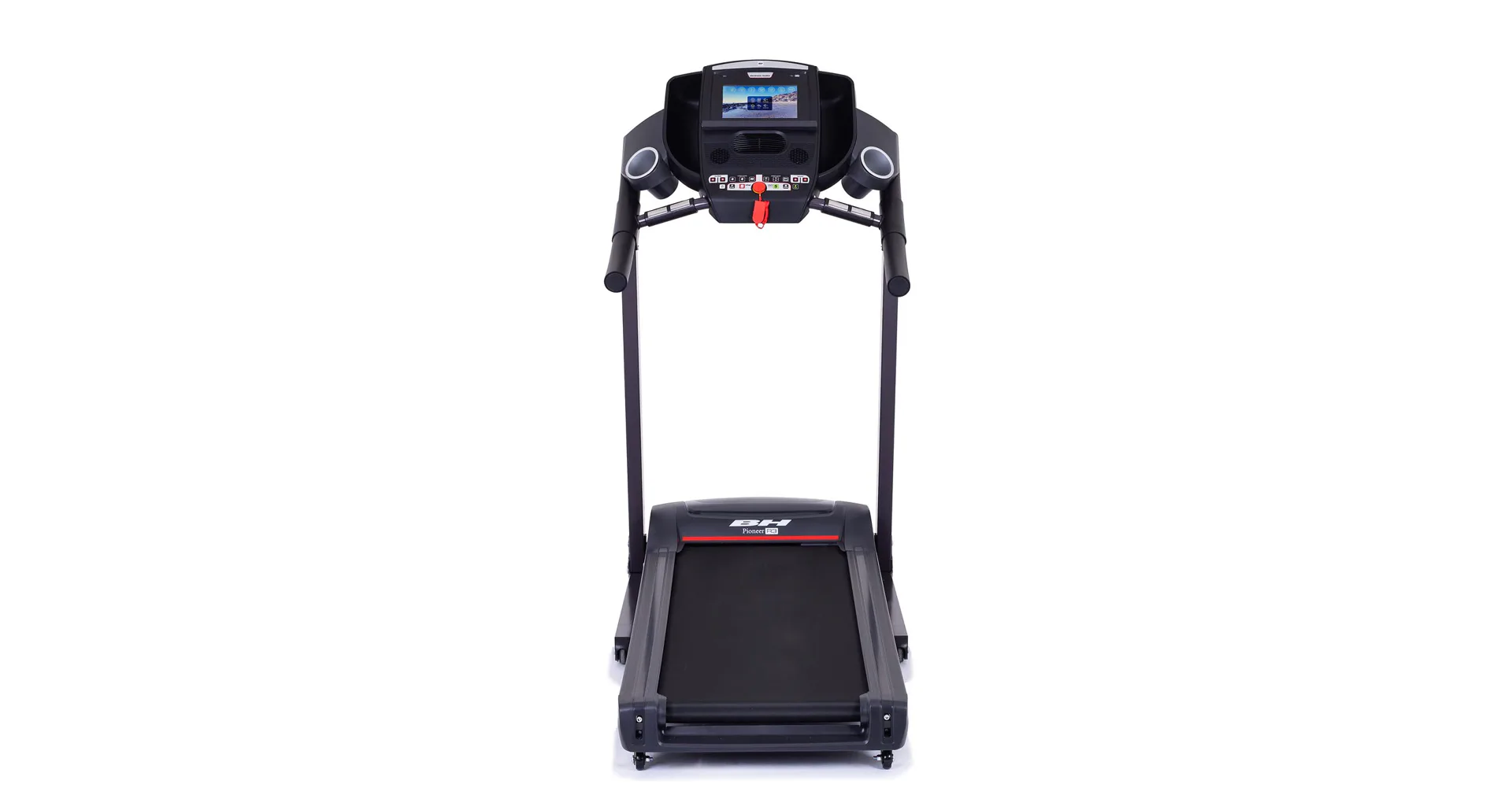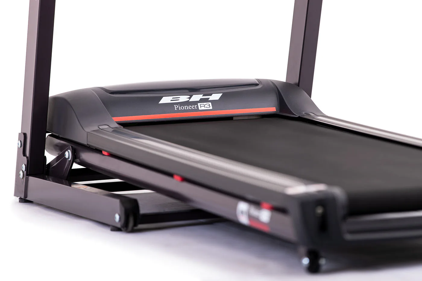 Běžecký pás BH Fitness PIONEER R3 disponuje počítačem s LCD displejem, držákem na lahev, senzory pro měření tepové frekvence a transportními kolečky. Po tréninku stroj snadno a rychle složíte do úsporné polohy.