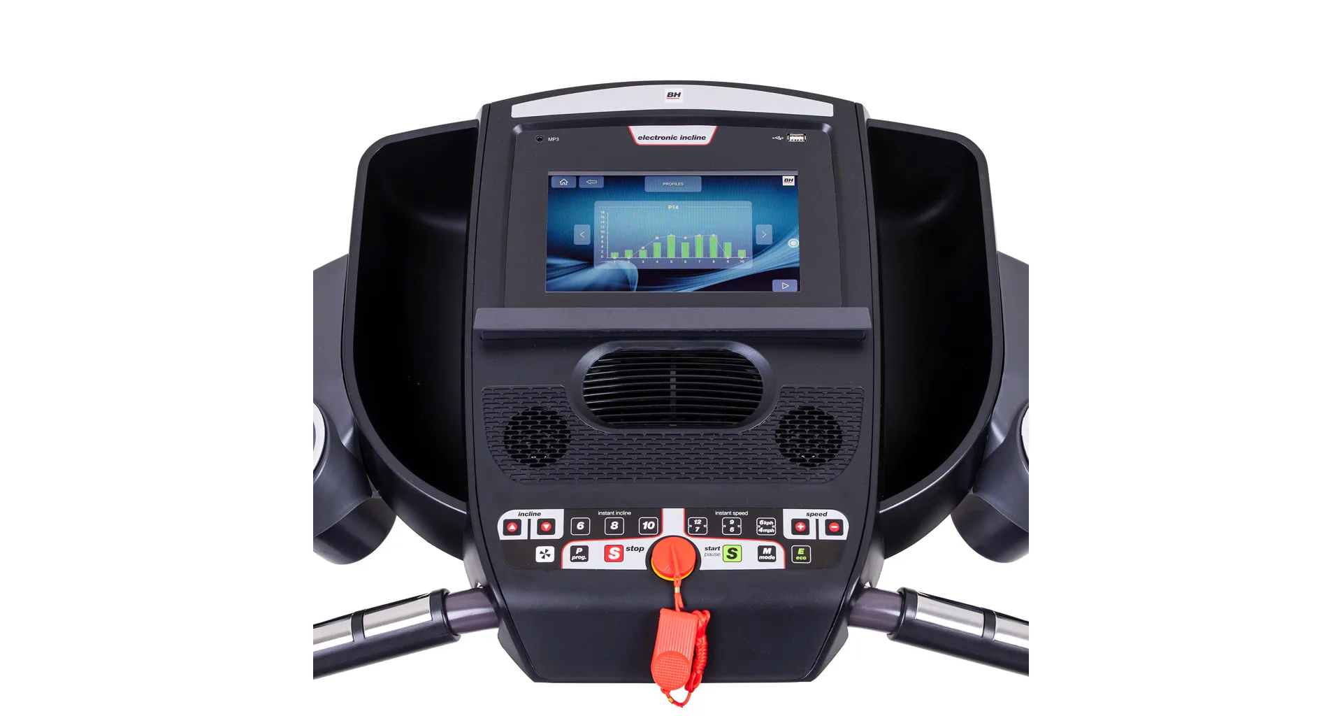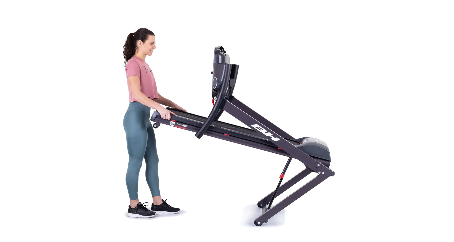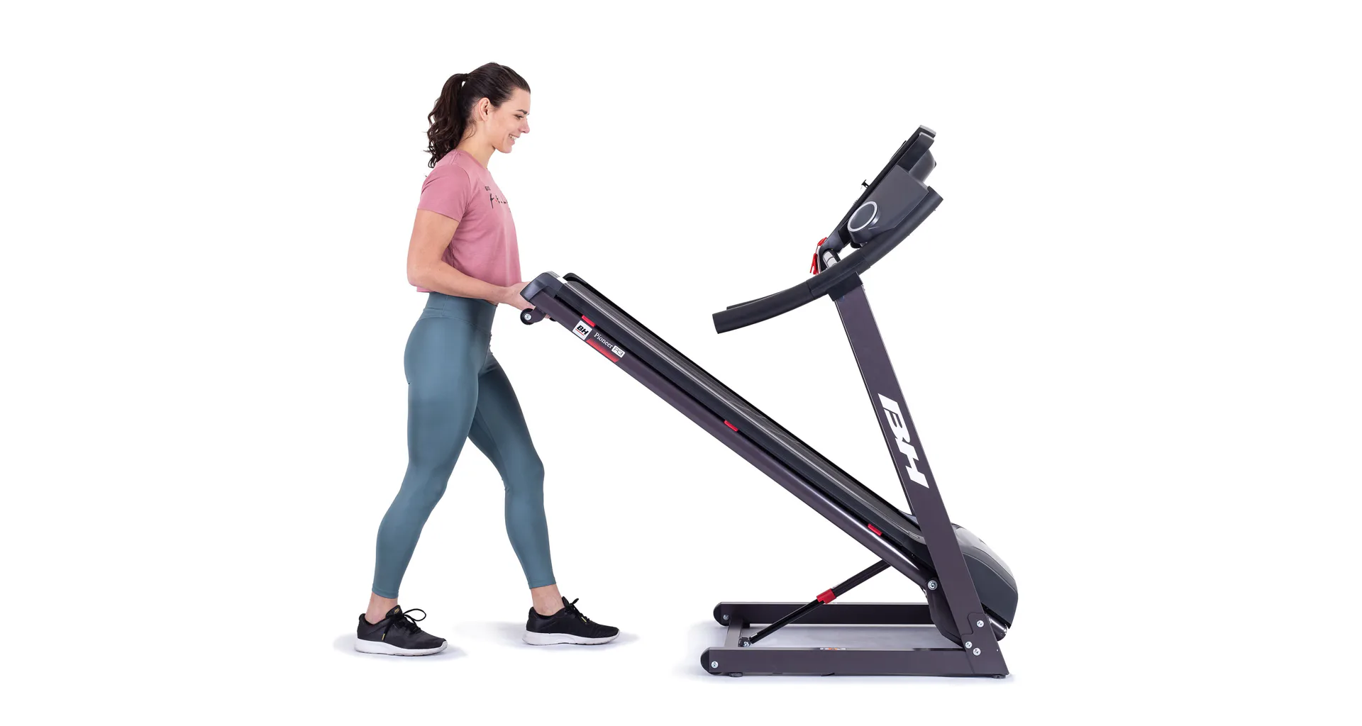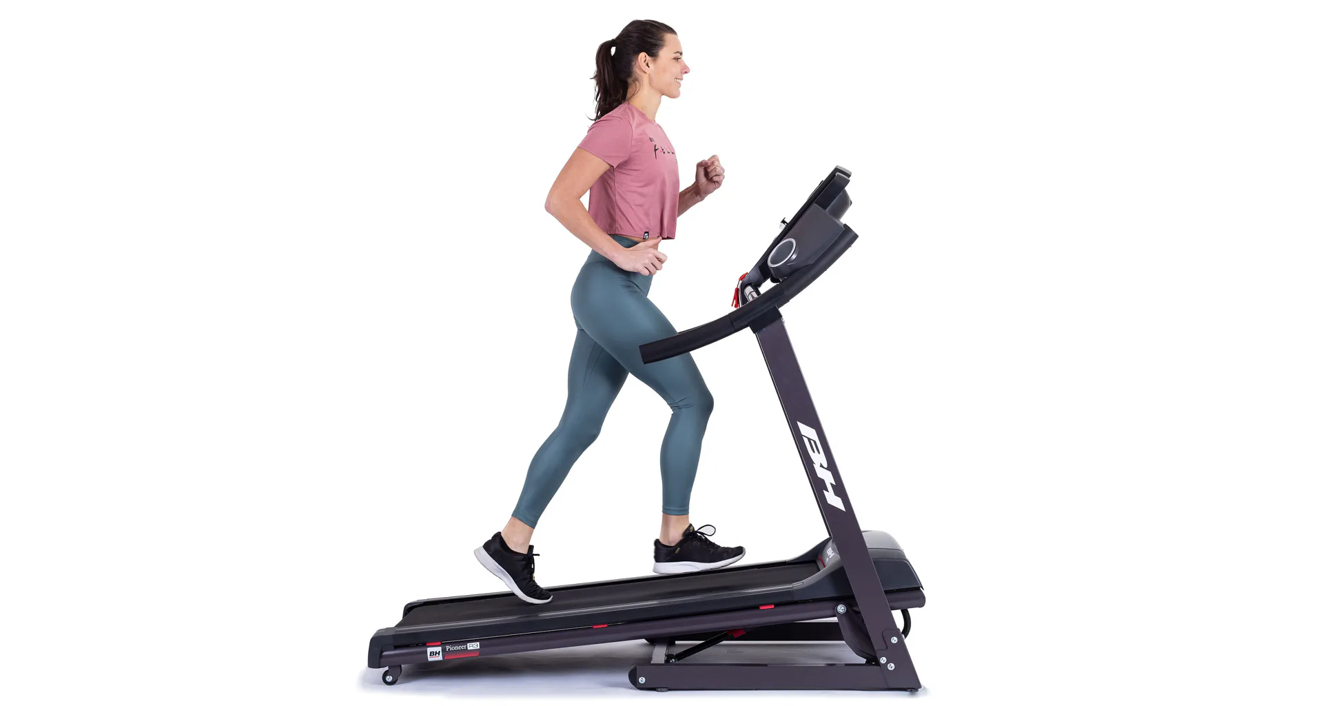 Běžecký pás BH Fitness PIONEER R3 disponuje počítačem s LCD displejem, držákem na lahev, senzory pro měření tepové frekvence a transportními kolečky. Po tréninku stroj snadno a rychle složíte do úsporné polohy.