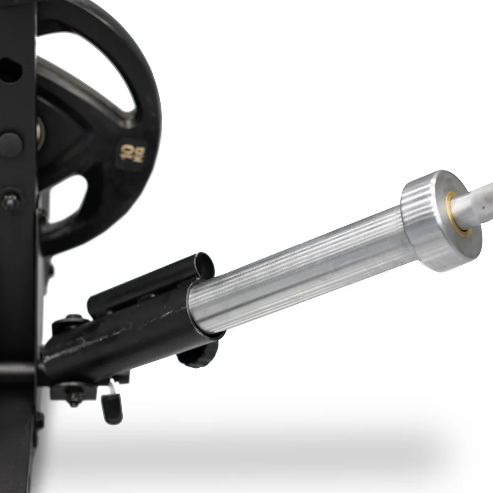 Standardní rozteč jakou znáte od profesionálních stojanů umožňuje pohodlné a komfortní cvičení, optimální úchop a bezpečné odkládání činky i vyšším osobám.