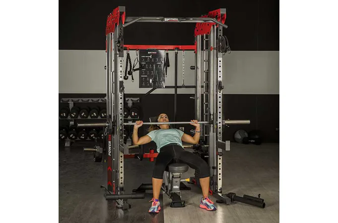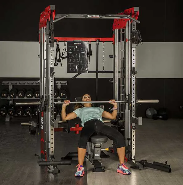 Multipress BH FITNESS Power Smith G140 využívá jako závaží olympijské kotouče, je tedy na každém uživateli, jakou zátěž si zvolí. Zároveň nabízí spousty druhů cvičení formou benchpressu, dřepů, shybů, tricepsových kliků, tlaků na prsa, ramena, kladek atd..