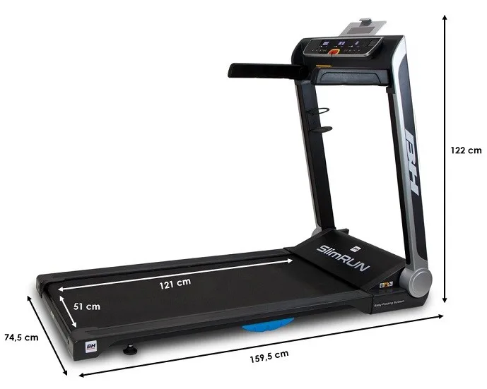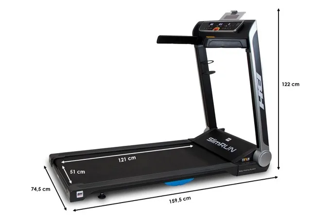 Běžecký pás BH Fitness SlimRun je vybaven kvalitním a tichým motorem s maximálním výkonem motoru 2,5 HP). Rychlost lze elektronicky regulovat v rozmezí 1 – 16 km/h bez regulace sklonu na ovládací konzoly s LCD displejem.