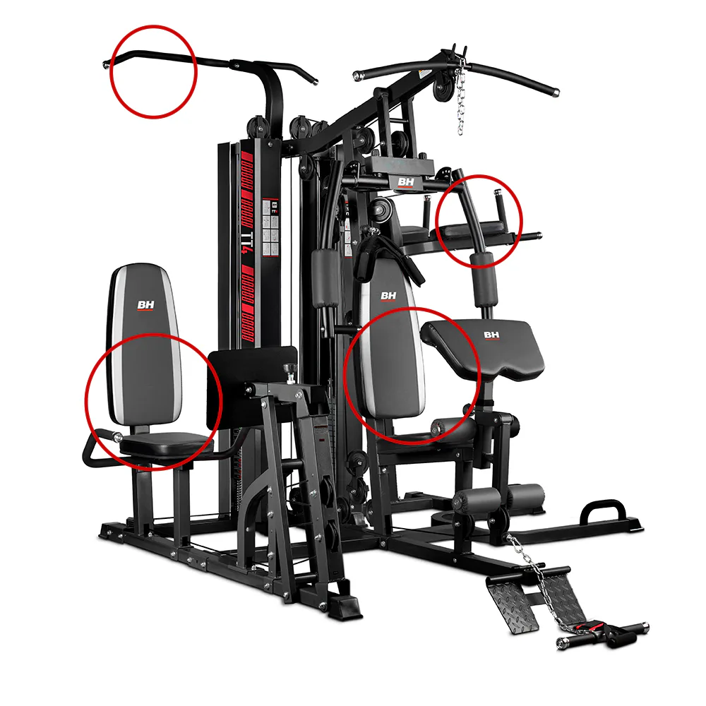 Nespornou předností věže BH Fitness TT-4 je možnost tréninku až 4 osob současně! To oceníte jak doma, tak především wellness a malá hotelová fitcentra. Věž nabízí plnohodnotné spektrum všech základních stanovišť pro posilování. Je to model, který vás doslova ze všech stran "obklíčí" cvičebními adaptéry.