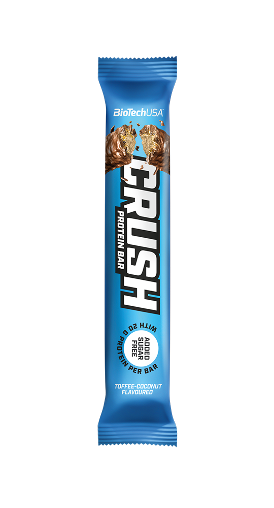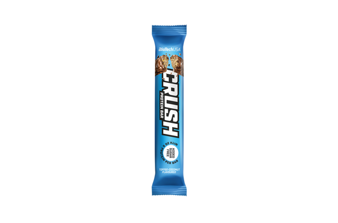 BioTech USA Crush Protein Bar je proteinová tyčinka s hrubou čokoládovou polevou, křupavými vrstvami a měkkou krémovou náplní uvnitř. Tyčinka je ideální svačinkou kdykoliv během dne, na které si nejenom pochutnáš, ale doplníš díky ní také potřebnou dávku kvalitních bílkovin. Neobsahuje žádné přidané cukry a představuje ideální alternativu ke klasickým nezdravým sladkostem. Láska na první kousnutí. Nechcete je vzdát své zdravé stravy? Nemusíte! Seznamte se s opravdu prémiovou proteinovou tyčinkou Crush a neváhejte si ji dopřát. Nechte se svést s tlustým čokoládovou polevou, křupavou vrstvou pod ní a vychutnejte si měkkou a krémovou náplň uvnitř!
