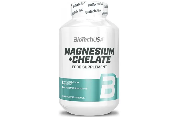 BioTech USA Magnesium + Chelate je oxid horčíka v kapsuliach s obsahom aj najvyužiteľnejšej chelátovej väzby minerálu. Horčík je minerálna látka, ktorá je dôležitá pre väčšinu buniek nášho tela a ich správne fungovanie a preto by sme mali dbať na udržiavanie jeho optimálnej hladiny. Prispieva k zníženiu vyčerpania a únavy ako aj k správnemu fungovaniu svalov a nervového systému. Pomáha udržiavať optimálnu rovnováhu elektrolytov v tele a prispieva k správnej látkovej premene, ktorá je dôležitá pre tvorbu energie.