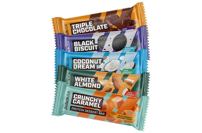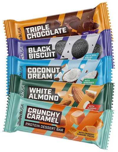 BIOTECH USA Protein Dessert Bar je skutočný zážitok z dezertov a bez kompromisov! Vďaka nízkemu obsahu cukru a obsahu 12 g bielkovín na tyčinku môže byť dokonalou súčasťou pestrej a vyváženej stravy. Môžete si ju dať ako po tréningu, na víkendový výlet alebo v rušný všedných dňoch.