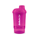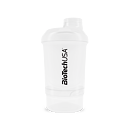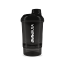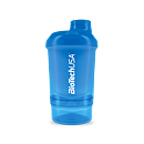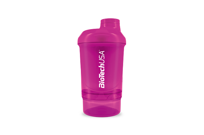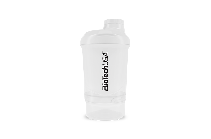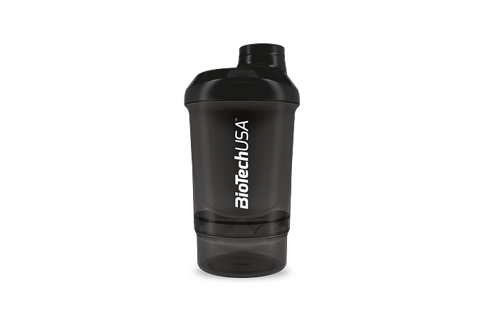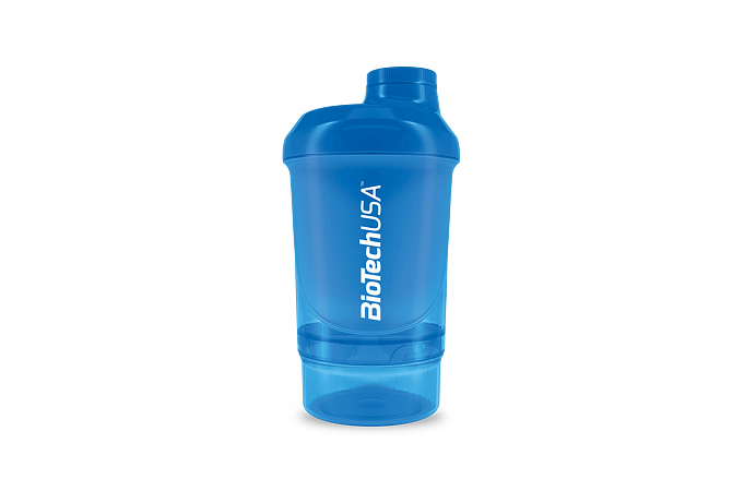 BioTech USA šejker WAVE + NANO je praktický dvojdielny šejker na prípravu kokteilov s uzáverom. Objem shakera je 300 ml s poschodím na tablety, kapsule alebo prášok (150 ml). Spodná časť slúži na prášok, tablety a kapsule, vrchná na prípravu nápoja. Mriežka zabezpečí kvalitný premiešanie koktejlu. Pri výrobe uzáveru a viečka bol použitý mäkší typ plastu. Výsledkom je 100% tesnosť, táto jedinečná inovácia úplne zabraňuje prenikaniu vody. Sitko je kužeľovitého tvaru, ktoré viacnásobne zvyšuje účinnosť miešania. Vyššia účinnosť je dosiahnutá vďaka väčšiemu povrchu sitka a teda aj väčšiemu prítoku tekutiny skrz sitko.