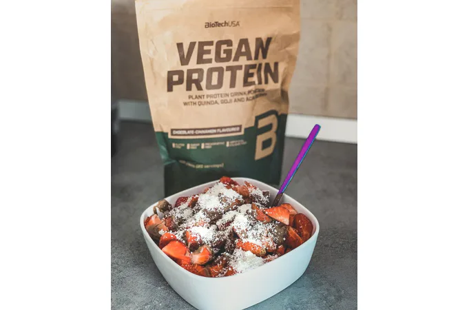 BIOTECH Vegan Protein je plnohodnotný rastlinný proteín, ktorý je kombináciou dvoch druhov proteínov, ktoré sa skvele dopĺňajú. Ryžový proteín a hrachový proteín. Táto zmes je navyše obohatená o superpotraviny v podobe quinoi, goji a acai.