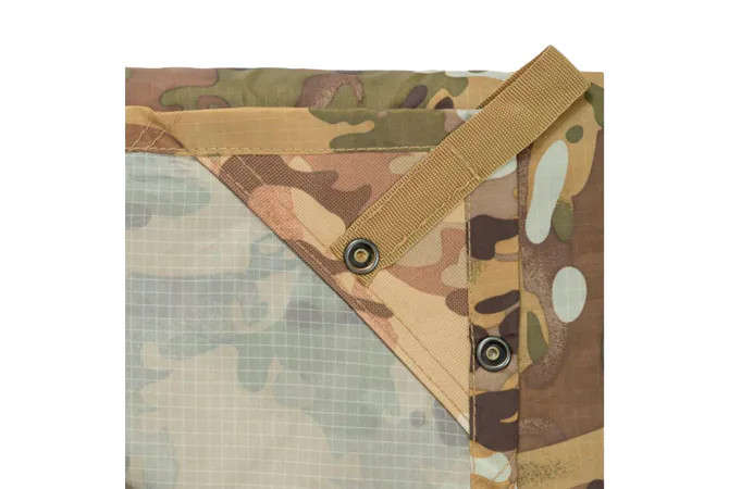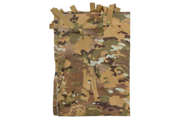 Veľká vodeodolná plachta, ktorú je možné natiahnuť cez šnúru alebo napnúť na tyčky. Zosilnené švy okolo háčikov, očká, upínacie cvoky pre spojenie viacerých plachiet. Odolnosť proti vode: 2000 mm.