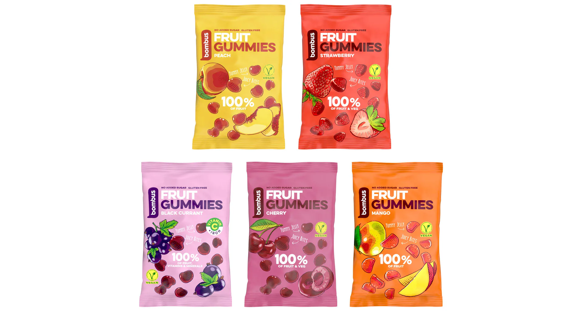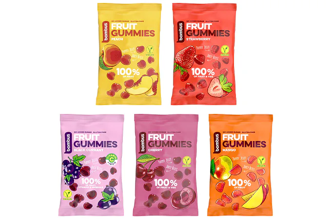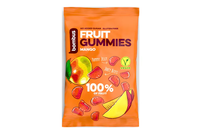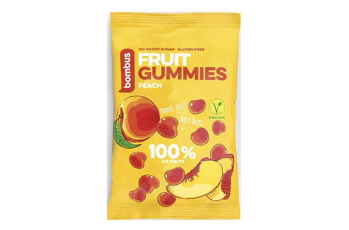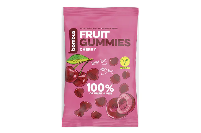 BOMBUS Fruit Energy Gummies sú vyrobené 100% iba z ovocia. Nenájdete v nich žiadny pridaný cukor, sú bez farbív a konzervantov. Obsahujú vlákninu, sú vegánske a prirodzene bezlepkové! Sú ideálnou odmenou pre školákov, zdravým maškrtením do kancelárie, do auta alebo na výlet.