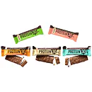 Vanilla a crispies - Zmes proteínov 28% (koncentrát srvátkových 15,5% a mliečnych bielkovín, sójový proteínový izolát), mliečna čokoláda so sladidlom 17% (sladidlo: maltitol, kakaové maslo, sušené odstredené mlieko, kakaová hmota, kakaový prášok so zníženým obsahom tuku, emulgátor: repkový lecitín, aróma), oligofruktóza, sladidlo: maltitol, krém s vanilkovou príchuťou so sladidlom 10% (sladidlo: maltitol, kakaové maslo, repkový olej, sušená srvátka, sušené odstredené mlieko, emulgátor : repkový lecitín, vanilková aróma) , zvlhčujúca látka: glycerol, repkový olej, sójové proteínové chrumky 3% (izolovaný sójový proteín, tapiokový škrob), hydrolyzovaný kolagén 2%, kakaové maslo, emulgátor: repkový lecitín, aróma. Môže obsahovať arašidy a suché škrupinové plody. Bezlepkový výrobok. Nadmerná konzumácia môže vyvolať preháňavé účinky.
