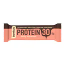 Salty caramel - Zmes proteínov 29,3% (koncentrát srvátkových 16,6% a mliečnych bielkovín, sójový proteínový izolát), mliečna čokoláda so sladidlom 17% (sladidlo: maltitol, kakaové maslo, sušené odstredené mlieko, kakaová hmota, kakaový prášok so zníženým obsahom tuku, emulgátor: repkový lecitín, aróma), oligofruktóza, sladidlo: maltitol, krém so sladidlom 10% (sladidlo: maltitol, kakaové maslo, repkový olej, sušená srvátka, sušené odstredené mlieko, emulgátor : repkový lecitín, aroma) zvlhčujúca látka: glycerol, repkový olej, sójové proteínové chrumky 3% (izolovaný sójový proteín, tapiokový škrob), hydrolyzovaný kolagén, kakaové maslo, emulgátor: repkový lecitín, karamelová aróma, jedlá soľ 0,5%. Môže obsahovať arašidy a suché škrupinové plody. Bezlepkový výrobok. Nadmerná konzumácia môže vyvolať preháňavé účinky.