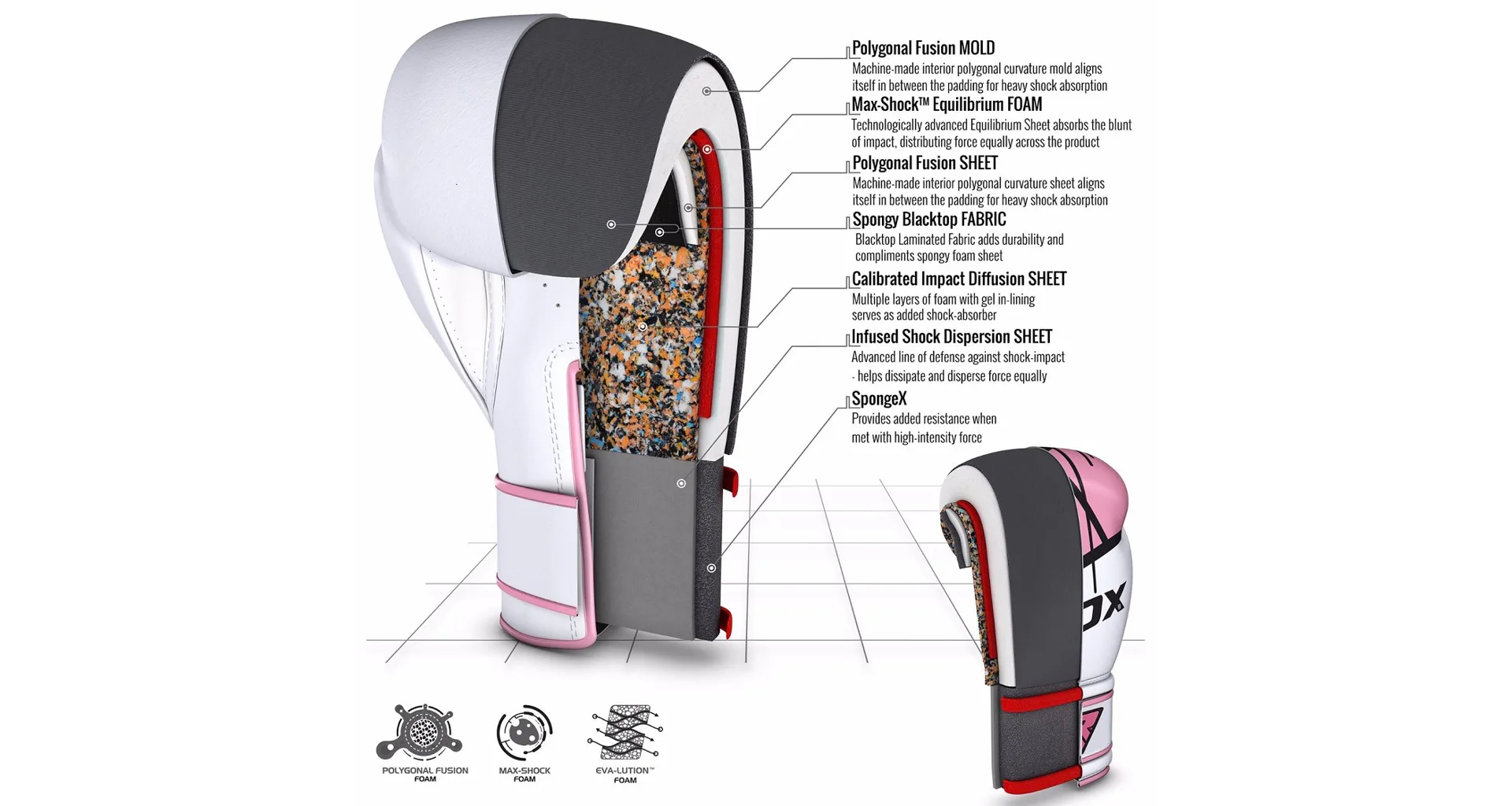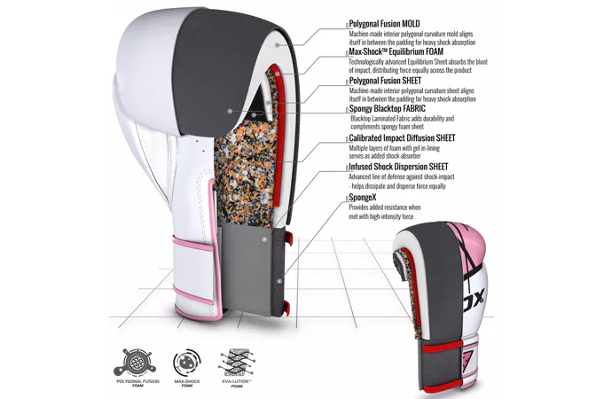 Dámske boxerské rukavice RDX F7 pink sú pevné a odolné a ich design ponúka štýl a eleganciu, sú navrhnuté tak, aby sedeli na ženskej ruke. Pevná koža Maya Hide a vypchávka z peny s vysokou hustotou poskytujú odolné boxerské rukavice, ktoré skvele tlmia údery a zaručujú užívateľovi každodenné bezproblémové využitie ako pri tréningu na boxovacom vreci, tak so sparing partnerom. Rukavice sú jedinečne navrhnuté tak, aby zodpovedali anatómii ženskej ruky.