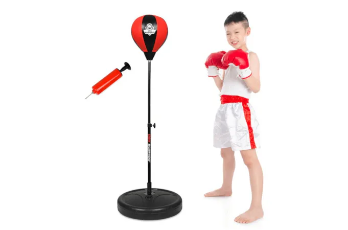 Základňa stojanu sa pre maximálnu stabilitu napĺňa pieskom, alebo vodou. Výška hrušky je plynule nastaviteľná v rozsahu 72 - 102 cm a je tak vhodná pre deti od 4 rokov do dosiahnutia výšky 140 cm. O reflexi hrušky sa stará vinutá pružina v spodnej časti stojana. Samotná hruška je vyrobená zo spevnenej, syntetickej kože. Šírka 18 cm a výška 23 cm je ideálna práve pre malých "bitkárov".