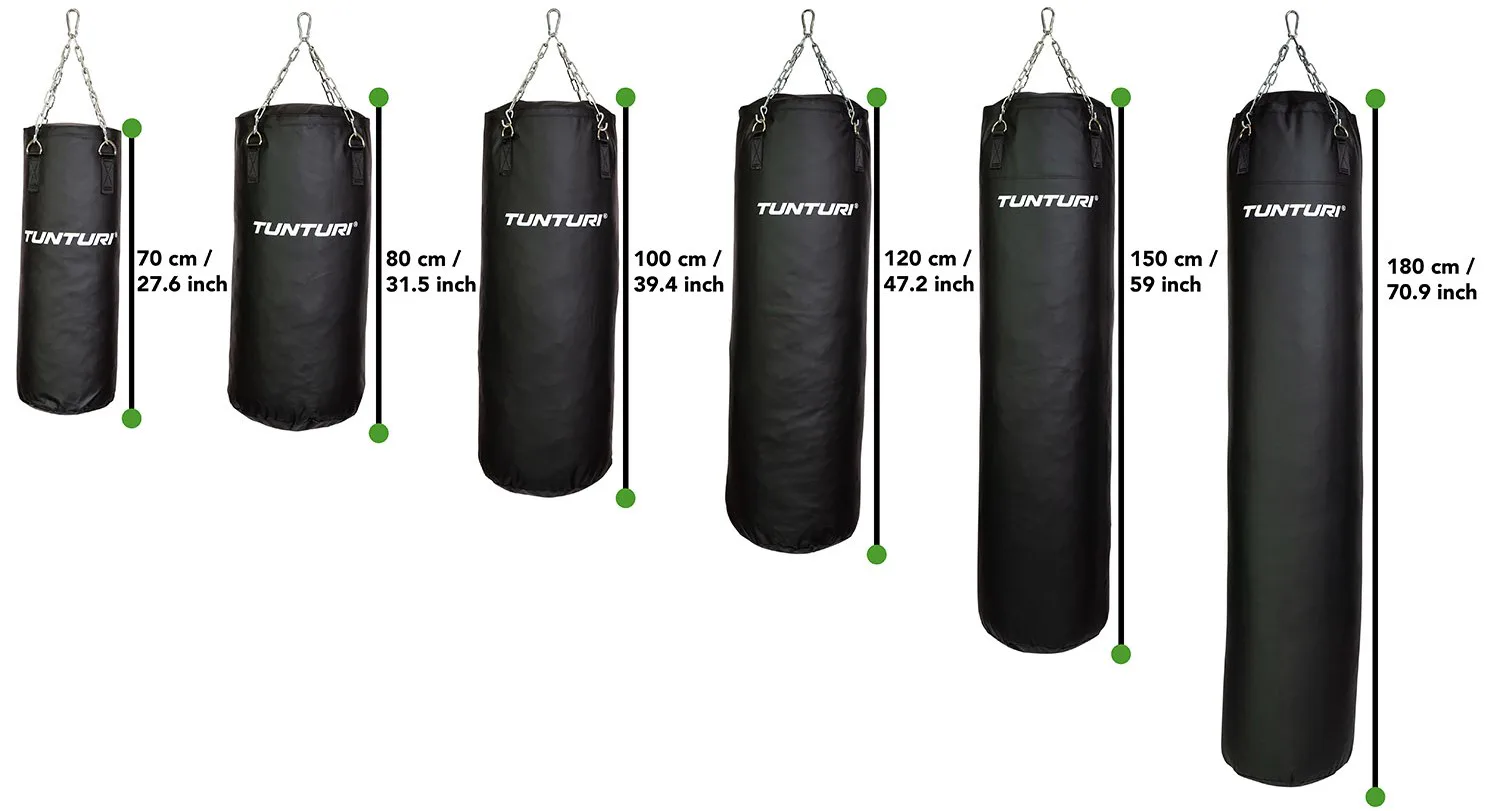 Boxovacie vrece Tunturi Filled with Chain je možné zavesiť doma. Ideálne, ak si chcete odfúknuť paru alebo len radi robíte bojové umenia. Boxovacie vrece Tunturi je dostupné vo veľkostiach od 70 - 150 cm. Boxovacie vrece ľahko pripevníte na priloženú reťaz. Napríklad v pivnici, na povale alebo v spálni. Ak používate ťažšie vrece, je lepšie objednať nástenný alebo stropný držiak.