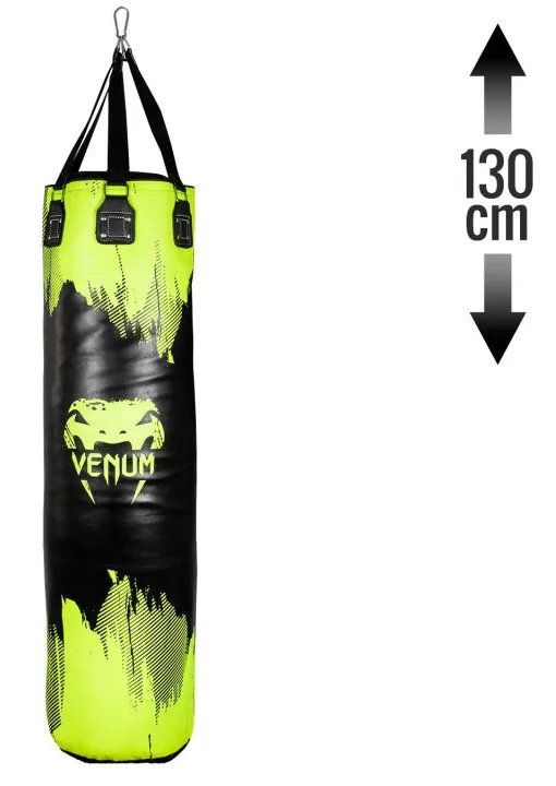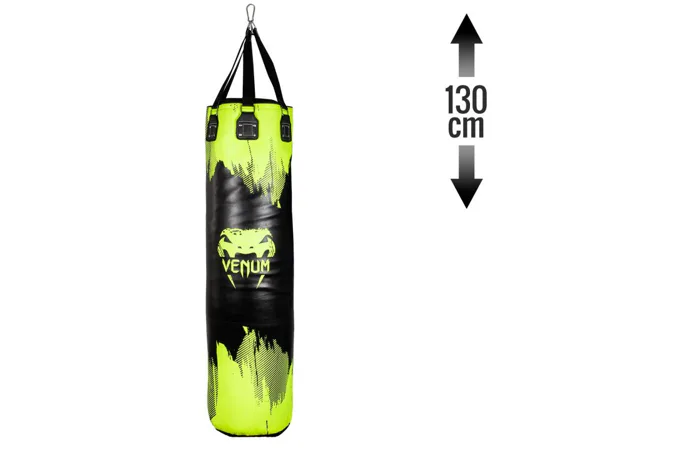 Boxovacie vrece VENUM Hurricane 130 cm vo výraznom čierno-žltom prevedení je ideálnou voľbou pre intenzívny tréning doma aj v telocvični. Vďaka svojej veľkosti a hmotnosti je vhodný pre širokú škálu bojových športov - od klasického boxu po MMA alebo Muay Thai.