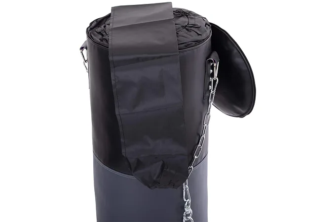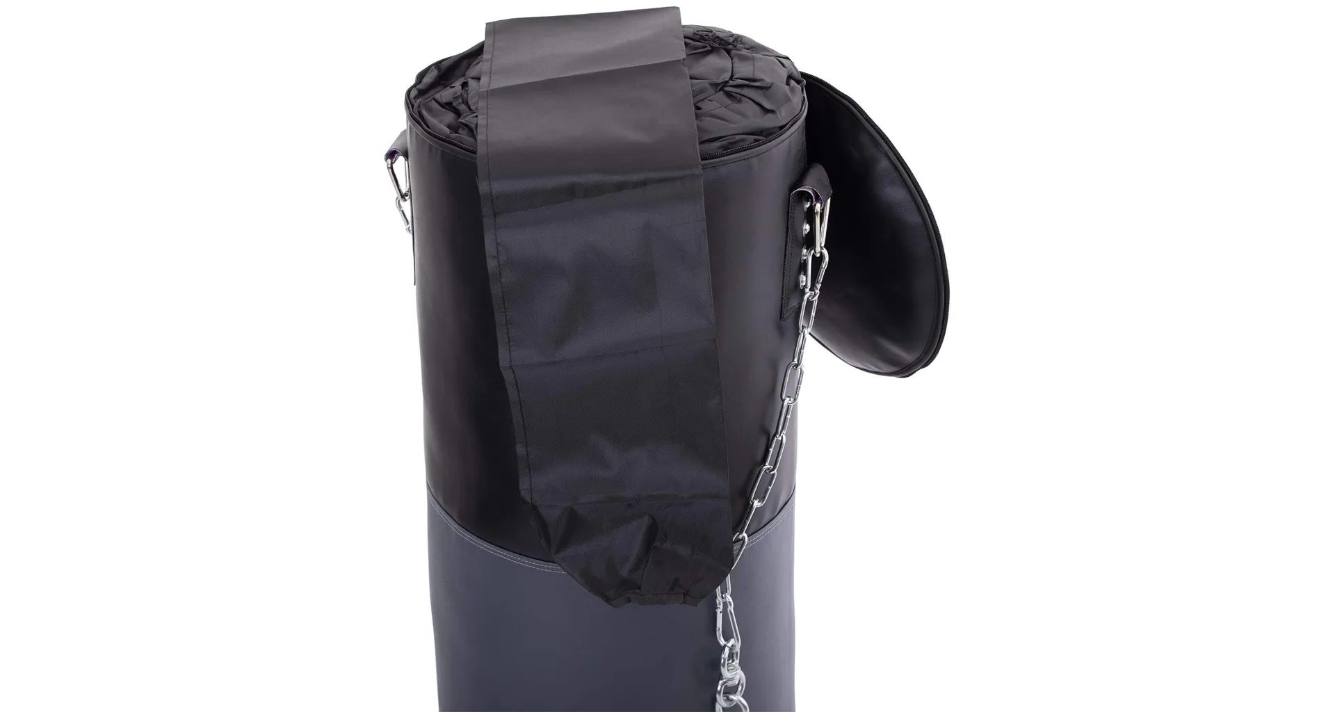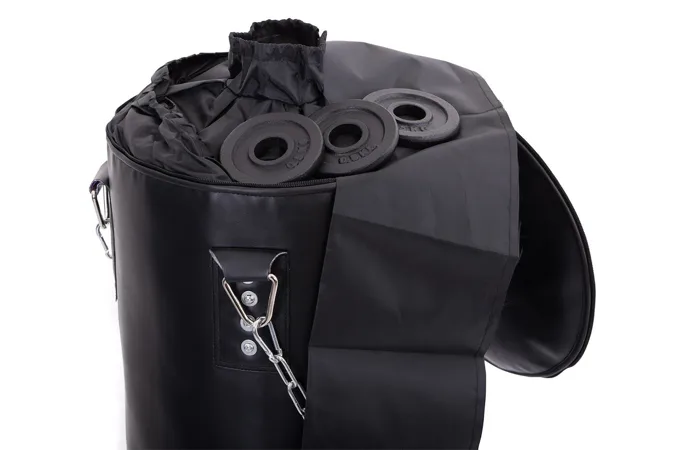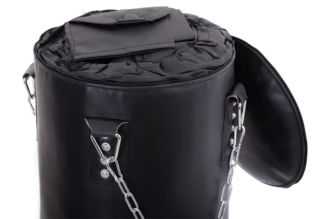 Boxovací pytel je vybaven zipovým víkem s látkovým „rukávem“, do kterého lze snadno vkládat náplň, například písek nebo závaží na činky. Trvanlivý materiál z odolné umělé kůže a kvalitní plnění zajišťují správný odpor a pružnost pro efektivní trénink.