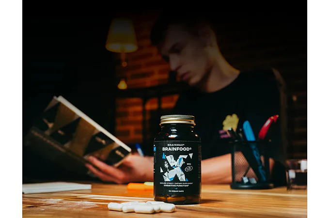 BrainMax BRAINFOOD je patentovaná unikátna forma horčíka Magtein®. Táto špeciálna forma horčíka dokáže prejsť cez hematoencefalickú bariéru do mozgu. V kombinácii s acetyl l karnitínom, ginkgo bilobou, l-theanínom a EGCG zo zeleného čaju tvorí ultimátny komplex. Ten podporí vašu kognitívnu výkonnosť aj zdravie, pamäť, fyzické a psychické povzbudenie, koncentráciu, zvýši vytrvalostný výkon i čulosť a zlepší sústredenie počas dňa za každej situácie. Celková podpora normálnej činnosti mozgu. Produkt neobsahuje žiadne balastné látky a prímesi.