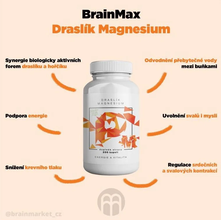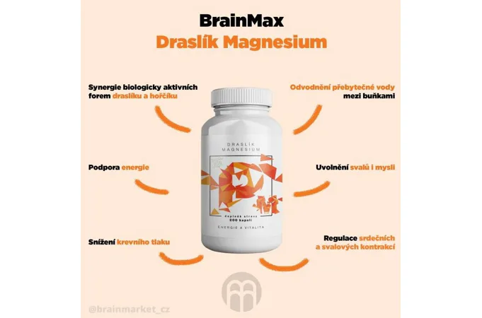 BrainMax Draslík Magnesium, Draslík citrát + Horčík malát, 200 rastlinných kapsúl