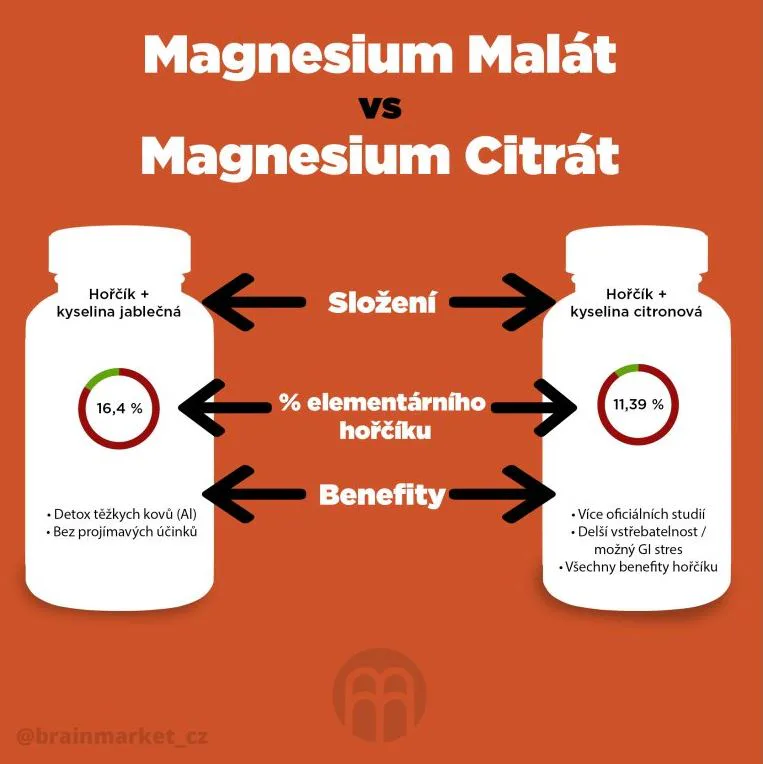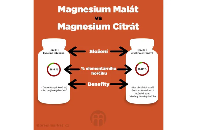 Magnézium malát je na našom trhu zatiaľ nie príliš známa forma vysoko vstrebateľnej horečnatej soli, ktorá je vhodná na užívanie v ranných a dopoludňajších hodinách pre jej energizujúci účinok. Magnézium malát je kombinácia kyseliny jablčnej a horčíka a práve vďaka kyseline jablčnej podporuje táto forma magnézia produkciu bunkovej energie (ATP, posledná fáza Krebsovho cyklu). 1.000 mg malátu horečnatého = 164 mg elementárneho horčíka na kapsulu