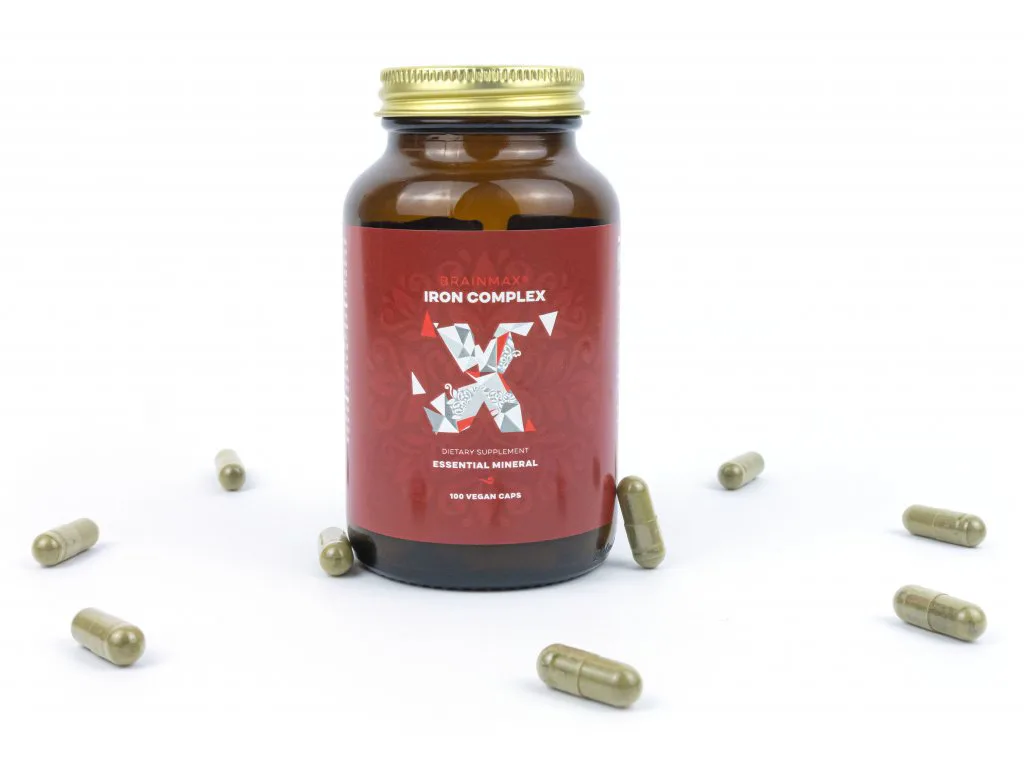 Železo je stopový prvok dôležitý pre produkciu červených krviniek, ktoré sa podieľajú na krvotvorbe, metabolizme aminokyselín a delení buniek. BrainMax Iron Complex, ktorý obsahuje železo Bisglycinát je pre telo najlepšie využiteľnou formou a navyše je šetrný k zažívaciemu systému. Synergické pôsobenie s kyselinou listovou zaisťuje správnu krvotvorbu a prispieva k zníženiu únavy a vyčerpania.