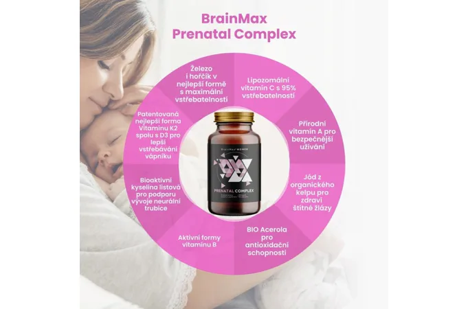 BrainMax Prenatal Complex je špeciálna formula vitamínov a minerálov v biologicky aktívnych formách, ktoré je schopné telo okamžite využiť. Tromi kapsulami doplníte všetky dôležité vitamíny, minerály a živiny, ktoré sú kľúčové pre správny vývoj bábätka a pokojný priebeh tehotenstva.