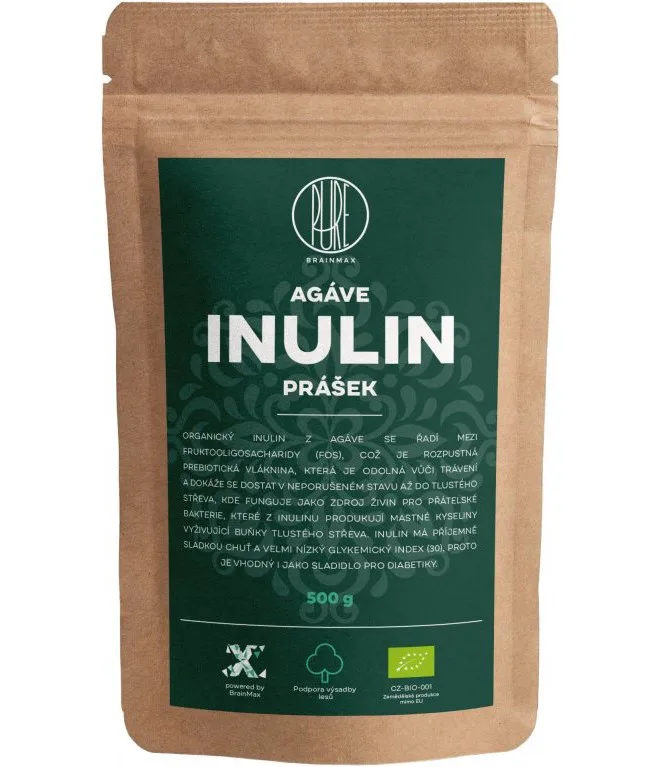 Inulín je polysacharid, konkrétne vláknina, ktorá sa vyskytuje v mnohých rastlinách a funguje aj ako prírodné sladidlo. BrainMax Pure Agáve Inulin pochádza z Agáve modrej v Mexiku, kde je inulín z rastliny extrahovaný. Agáve je najprv dôkladne očistená, následne sa z nej odparí voda a potom je usušená.