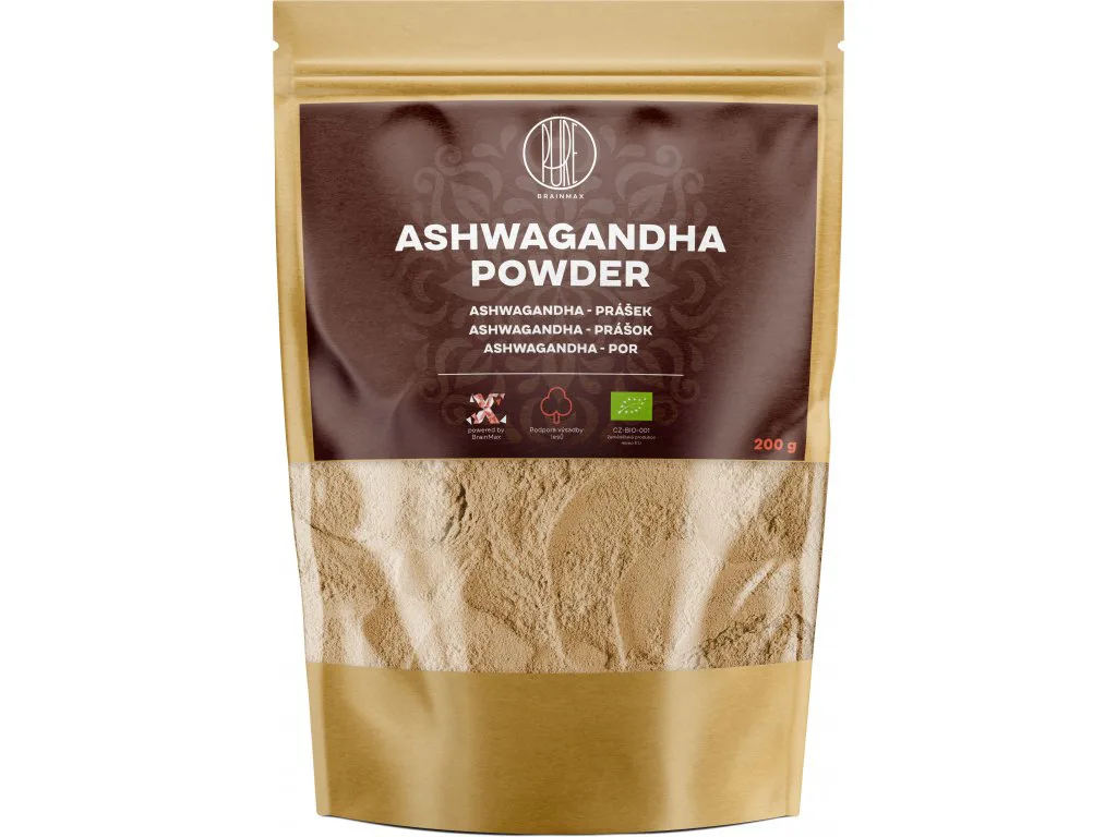 Ashwagandha je jeden z najznámejších adaptogénov Ajurvédskej medicíny. Adaptogény nás chránia pred stresom a podporujú celkovú vitalitu organizmu. Pre jej liečivé účinky sa používajú hľuzy, ktoré sa najprv usušia na slnku a potom rozomelú na prášok. BrainMax Pure Ashwagandha je v BIO kvalite, neobsahuje teda žiadne škodlivé látky. Vďaka svojmu pôvodu a šetrnému pestovaniu obsahuje maximum účinných látok. Prášok je pre telo dobre stráviteľný, má zemitú chuť a je dobre rozpustný vo vode alebo džúse.