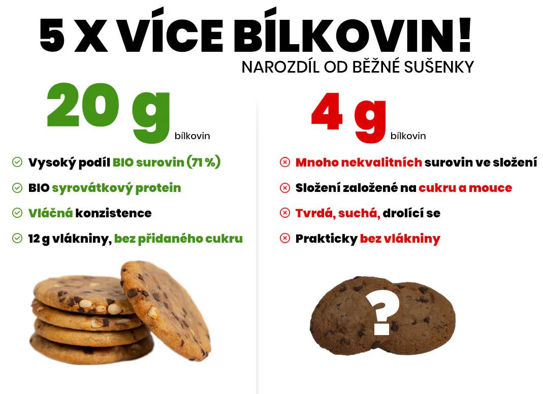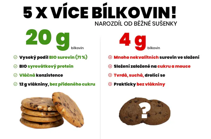 Ak hľadáte niečo dobré na desiatu môžete si pochutnať na BrainMax Pure Protein Cookie. Sušienke, ktorá je vyrobená zo srvátkového proteínu, arašidového masla a kvalitnej horkej čokolády. Ako sladidlo sme vlákninu z čakanky, kokosový sirup a erytritol. BrainMax Pure Protein Cookie Cookie je vláčna sušienka s poriadnou náložou čokolády, ktorá je navyše nabitá živinami.