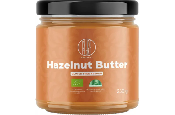 Predstavujeme lahodnú novinku zo sveta orieškov BrainMax Pure Hazelnut Butter Natural. Krém je vyrobený len z ľahko opražených BIO lieskových orechov bez pridaného cukru, soli a palmového oleja. Obsahuje iba rozomleté lieskové jadrá, ktoré sú zbavené šupky. Vzniká tak čistý lieskovoorieškový krém jemnej konzistencie a sladkastej chuti.