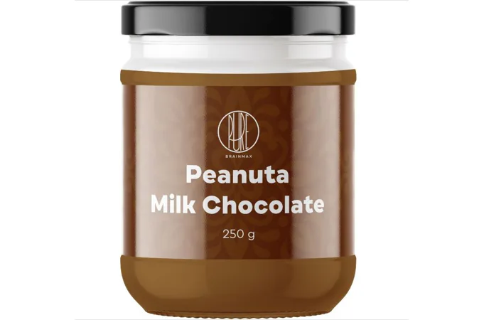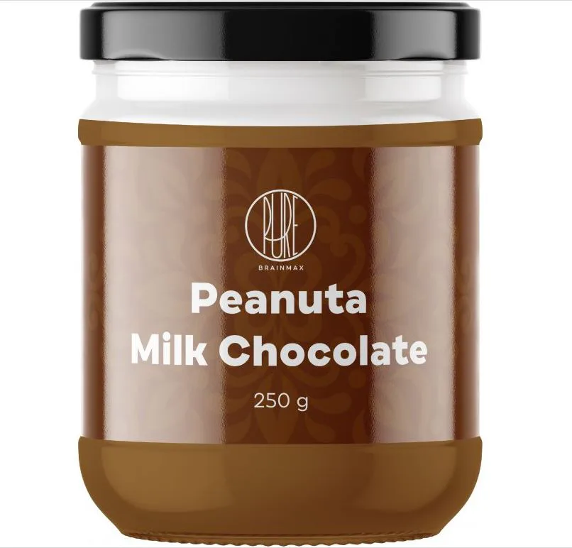 BrainMax Pure Peanuta, Mliečna čokoláda obsahuje iba arašidy a mliečnu čokoládu prvotriednej kvality. Krém má vysoký podiel bielkovín (26 g na 100 g), vlákniny (8 g na 100 g) a neobsahuje žiadne aditíva ako je palmový olej alebo škroby. Vďaka tomu má veľmi intenzívnu chuť, ktorú si zamilujete po prvej lyžičke! Krém si môžete vychutnať v tvarohu, namazať im francúzske toasty alebo napríklad palacinky a lievance.