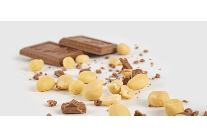 Zloženie: Arašidy 75% *, mliečna čokoláda (maltitol, kakaové maslo, sušené plnotučné mlieko, kakaová hmota, lecitín, prírodná vanilková aróma). *Surovina v BIO kvalite. Tento produkt obsahuje 75% ingrediencií v BIO kvalite.