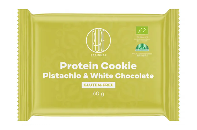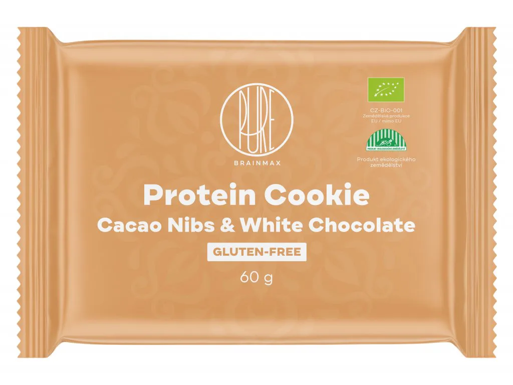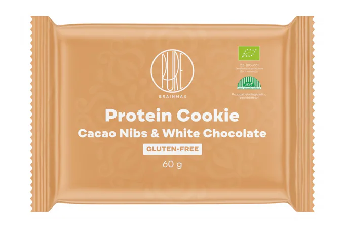 BrainMax Pure Protein Cookie je proteínová sušienka vyrobená z BIO srvátkového a BIO mliečneho proteínu. Každá sušienka obsahuje 13 g bielkovín a viac ako 7,5 g vlákniny. V sušienke sú kúsky chrumkavých a lahodných kúskov podľa príchute, vďaka čomu má sušienka príjemnú štruktúru. Cookieska je mäkká, vláčna a 100% použitých ingrediencií je v BIO kvalite. Na sušienke si tak pochutnajú aj tí najnáročnejší!