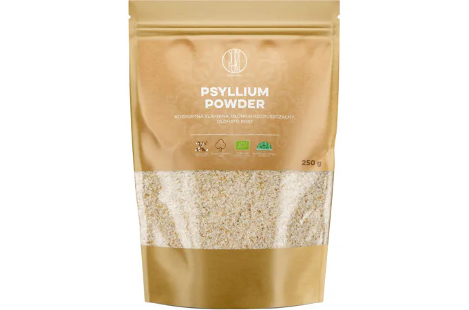 Psyllium je rozpustná vláknina, ktorá v čreve pôsobí ako prebiotikum. Podporuje trávenie a zdravie celého tráviaceho traktu tým, že slúži ako živina pre zdraviu prospešné baktérie (probiotiká), ktoré osídľujú črevný mikróbiom. Prášok je v BIO kvalite a dobre sa rozpúšťa.