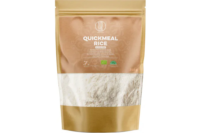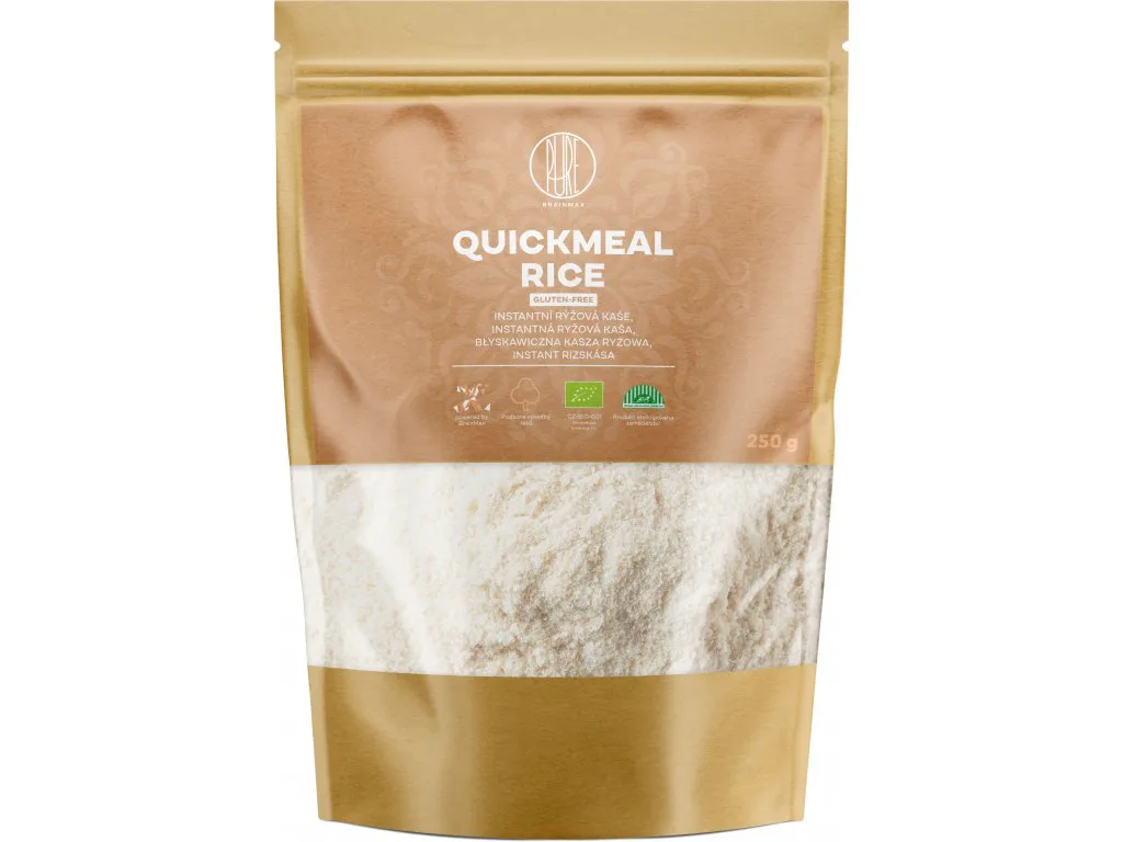 BrainMax Pure Quick Meal Ryžová kaša BIO je instantná kaša z organickej ryže je tými správnymi raňajkami alebo desiatou všetkých fitness nadšencov, ale aj tých, ktorí si chcú dopriať kvalitný zdroj sacharidov a zároveň si pochutnať. Jej príprava je rýchla, jednoduchá a pochutnajú si na ňu ako dospelí, tak aj deti. Kaša neobsahuje pridaný cukor, lepok a je v BIO kvalite. Môže slúžiť nielen ako sladké raňajky, ale aj ju môžete zahustiť do polievky alebo omáčky.