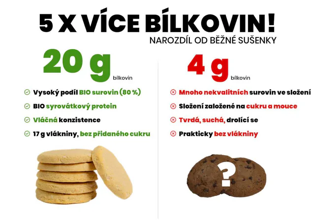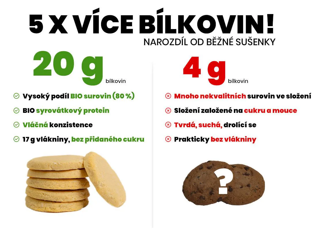 Poctivo ručne pripravená cookieska, ktorý chutí ako skutočné jedlo a je neuveriteľne vláčna. Intenzívna chuť BIO kokosu a BIO mandlí v kombinácii s BIO srvátkovým proteínom sa stane návykovou látkou pre vaše zmysly. Ale tým to nekončí! Táto proteín cookie obsahuje 20 g bielkovín, 17 g vlákniny a len 6 g prirodzene vyskytujúceho cukru. Do cookiesky sme nepridali ani gram rafinovaného cukru, prirodzene sladkú chuť zariadil erytritol a vláknina z čakanky.