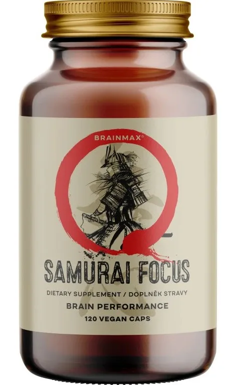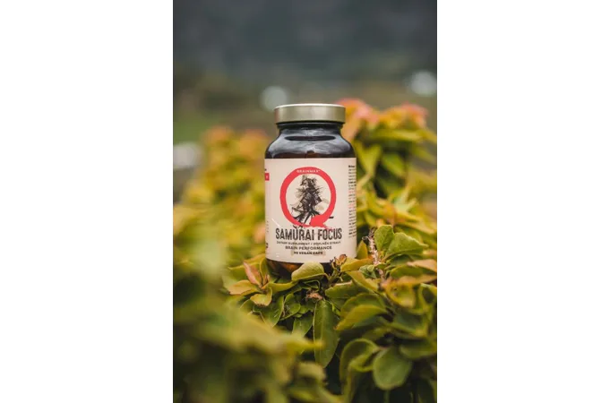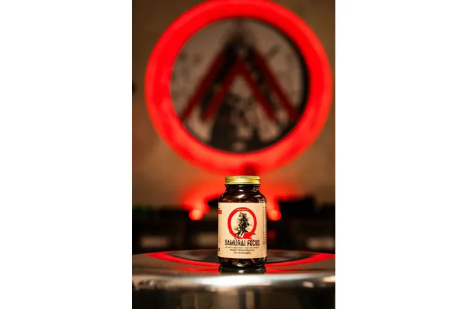 Samurai Focus je nové nootropikum, ktoré podporuje premýšľanie, koncentráciu, motiváciu a odolnosť, čo sú hlavné vlastnosti samuraja. I keď z vás neurobíme samuraja, pomôžeme vám dosahovať lepšie výkony. Zloženie bolo navrhnuté v spolupráci s bojovníkom Jirkou Procházkom na základe najnovších vedeckých poznatkov o fungovaní mozgu a tela. Tento produkt podporuje výživu mozgu a dopamín, acetylcholín pre tvorivosť a motiváciu vďaka vysokej dávke CDP-cholínu, Acetyl-Tyrosínu, Fosfatidylserinu a Lion's mane (hrebíček). Prírodné stimuly pre maximálnu koncentráciu zahŕňajú enXtra®, guaranu, zelený čaj, ginkgo bilobu, rhodiolu a bacopu monnieri. Celkovo 16 účinných látok, ktoré dokonale spolupracujú a premenia vaše obyčajné dni na impozantný boj za prekonávanie vlastných limitov.