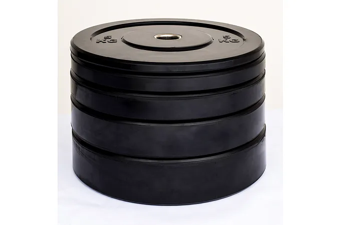 Kotúče BUMPER PLATE TRAINING sú veľmi odolné, nárazy zachytávajúce tvrdá zmes gumy a PVC má optimálne odrazové vlastnosti a oproti skôr vyrábaným kotúčom s minimálnym obsahom PVC majú vyššiu odolnosť (zloženie s minimom PVC spôsobovalo že sa guma z kotúčov otĺkala. Na každej strane kotúča je vylisovaná hmotnosť kotúča.