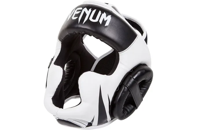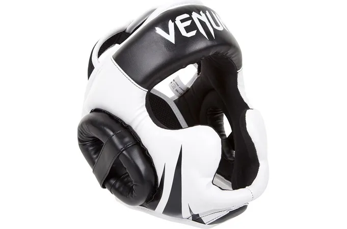 Chránič hlavy Challenger 2.0 od značky VENUM je vyrobený z umelej kvalitnej kože, pre vysokú odolnosť je vyplnená trojitou penou, ktorá dokonale pohlcuje nárazy. Prilba je navrhnutá v súlade s bezpečnostnými štandardmi a zaisťuje tak bezpečnosť a komfort počas zápasu, tréningu či nácviku so sparring partnerom. Tvar helmy je navrhnutý tak, aby boli chránené lícne kosti, oči, nos a uši. Na zaistenie najvyššej kvality ochrany je chránič hlavy Challenger 2.0 vyrobený z kvalitnej umelej kože, ktorá poskytuje pohodlie pri očakávaných intenzívnych úderoch v oblasti hlavy. Pokrytie hlavy a tváre bolo navrhnuté tak, aby bolo možné kombinovať úplnú ochranu hlavy a zároveň udržať 180 stupňový výhľad na svojho súpera.