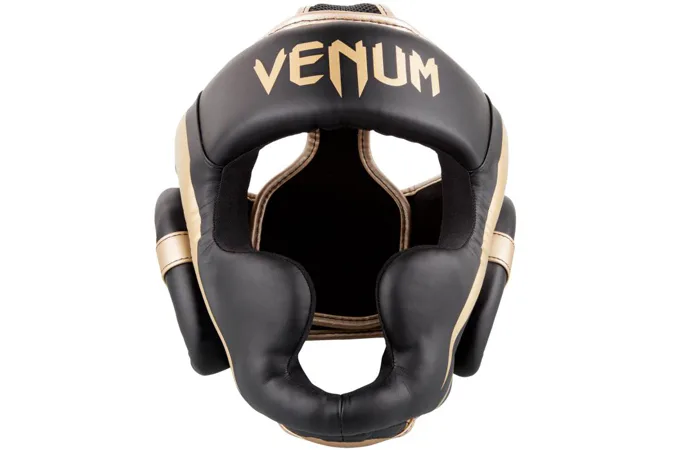 Chránič hlavy Elite od značky VENUM je vyrobený zo 100% semi-kože, pre vysokú odolnosť je vyplnená trojitou penou, ktorá dokonale pohlcuje nárazy. Prilba je navrhnutá v súlade s bezpečnostnými štandardmi a zaisťuje tak bezpečnosť a komfort počas zápasu, tréningu či nácviku so sparring partnerom. Tvar helmy je navrhnutý tak, aby boli chránené lícne kosti, oči, nos a uši. Pre zaistenie najvyššej kvality ochrany je chránič hlavy Elite vyrobený zo semi-kože, ktorá poskytuje pohodlie pri očakávaných intenzívnych úderoch v oblasti hlavy. Pokrytie hlavy a tváre bolo navrhnuté tak, aby bolo možné kombinovať úplnú ochranu hlavy a zároveň udržať 180 stupňový výhľad na svojho súpera.