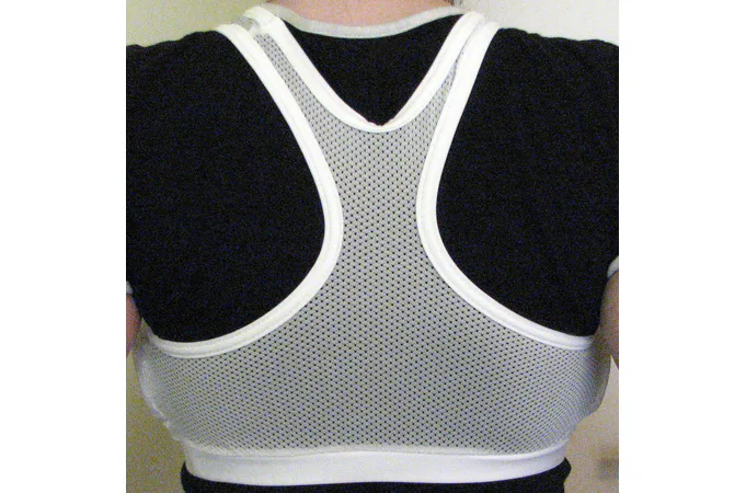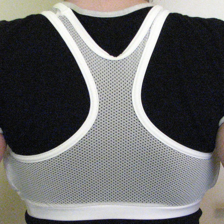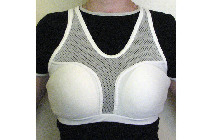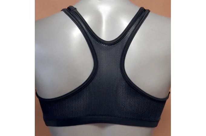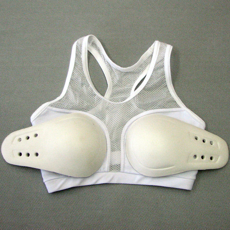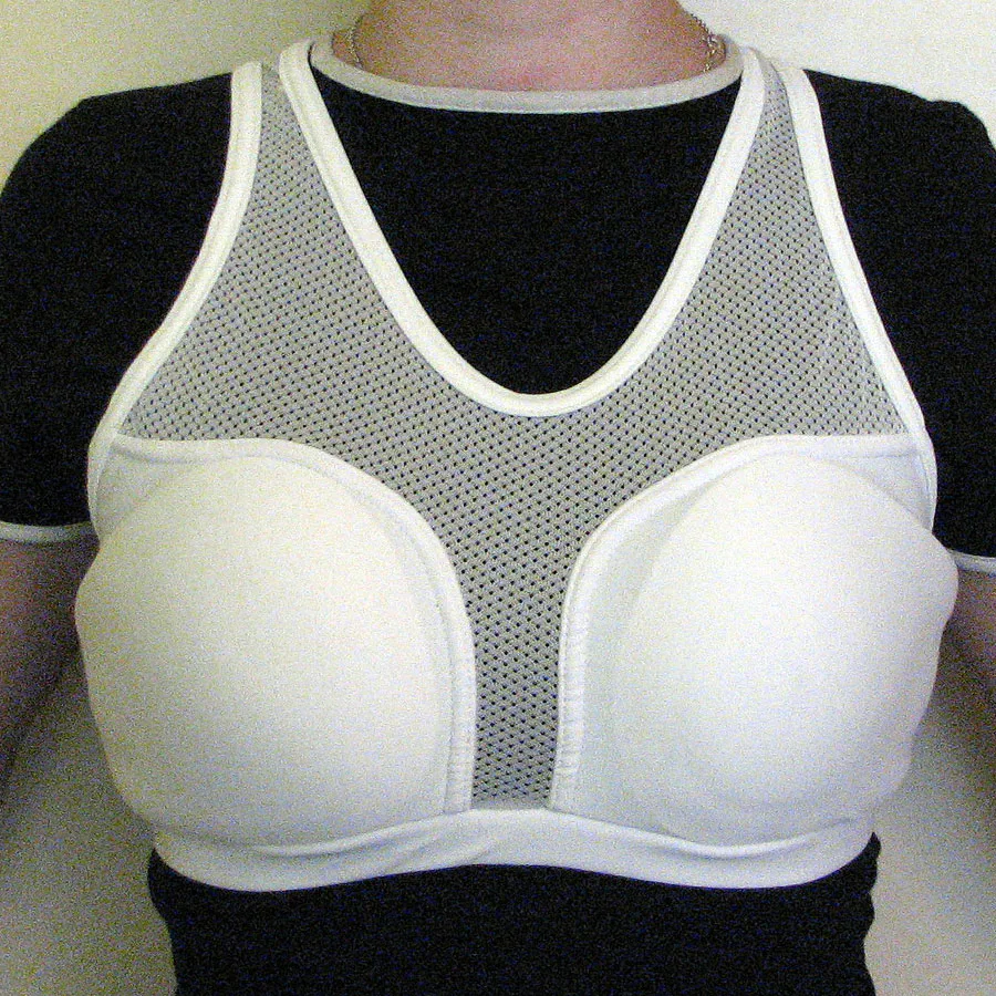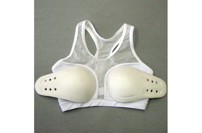 Čierny elastický chránič hrudi pre dievčatá a ženy. Slúži k znižovaniu účinku úderu do oblasti hrudníka a pŕs. Samotný chránič je ľahký, elastický a neobmedzuje v pohybe. Je vyvinutý odborníkmi tak, aby dokonale padol a žena sa v ňom cítila komfortne. Je vyrobený tak, aby bol dobre odvetrávaný. Ochrana vytvára dve výstelky, ktoré je možné samostatne vybrať a chránič prať.