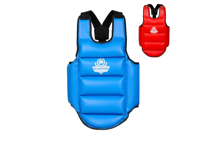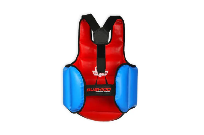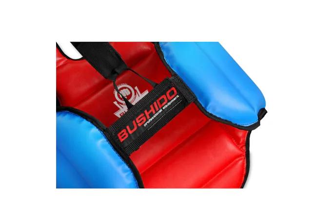 DBX Bushido OT1 je obojstranný chránič hrudníka, ktorý je špeciálne navrhnutý pre tréning boxu, kickboxu a MMA. Jedna strana je modrá a druhá červená, to umožňuje ľahkú identifikáciu pri tréningu vo dvojici. Model OT1 je vyplnený polyuretánovou penou, ktorá dokonale pohlcuje nárazy, zachováva si svoj tvar a nedeformuje sa. Chránič je ľahký a neobmedzuje pohyb.