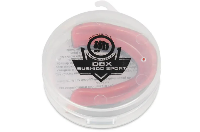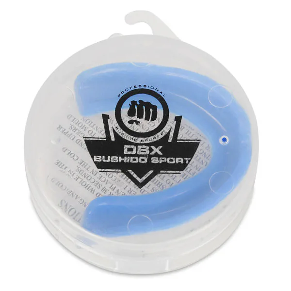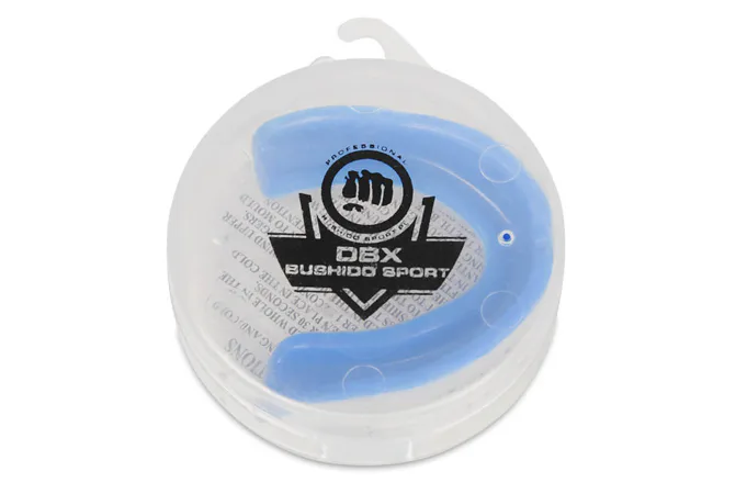 Chránič na zuby gélový DBX BUSHIDO. Chránič sa nasadzuje na horné poschodie. Vnútorná gélová vrstva zvyšuje komfort nasadzovanie. Vonkajšia gumová vrstva je vybavená vzduchovými kanálikmi, ktoré uľahčujú dýchanie pri stlačených zuboch a ďalej dvoma plôškami, ktoré zvyšujú stabilitu chrániče počas zhryze. V dôsledku použitia dvoch vrstiev je chránič celkovo hrubšie a tak i pohodlnejšie. Chránič je dodávaný v plastovej krabičke.