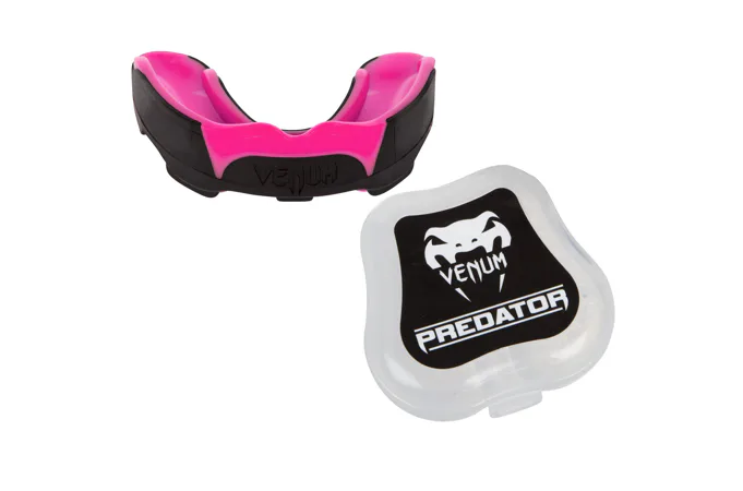 Chránič zubov Predator od značky VENUM je vhodný pre všetky kontaktné športy, nasadzuje sa na horné poschodie. Perfektný dizajn s nízkym profilom a pokročilý gélový rám Nextfit, ktorý sa skvele pasuje do zubov, nie je len pohodlným prispôsobením, ale taktiež umožňuje lepšiu priedušnosť pri tréningu a komunikácii s trénerom. Dvojjadrový dizajn s gumovým rámom s vysokou hustotou, ktorý sa prispôsobí vašej čeľusti a zaistí lepšiu absorpciu pri každom náraze. Akonáhle je šok absorbovaný, je rovnomerne rozptýlený na silnejšie oblasti zubov, čo udržuje vaše zdravé ústa neporušené. Chránič poskytuje perfektnú kombináciu pohodlia, flexibility a tlmenia nárazov. S cieľom splniť očakávania všetkých zápasníkov bol chránič testovaný zápasníkmi UFC, ako je José Aldo a Lyoto Machida.