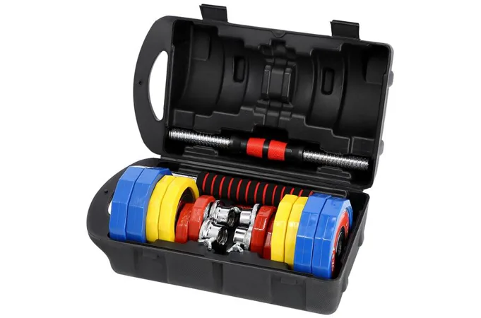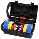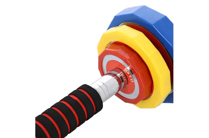 Špeciálny spojovací diel je po stranách opatrený závitmi, do ktorých sa jednoducho naskrutkujú obe činky. Súprava HMS SKC20 je prvým modelom z našej ponuky, ktorý umožňuje toto riešenie, ktoré šetrí náklady a miesto vo vašej domácej posilňovni. Sada obsahuje 2 krátke, nakladacie osi opatrené ergonomickým úchopom, spojovací diel, 4 zámky a 12 kotúčov.