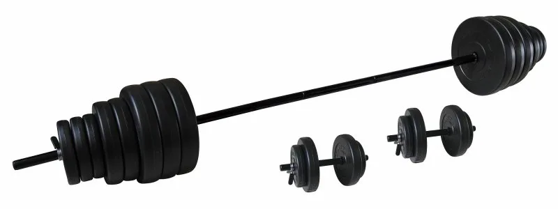 TUNTURI činkový vinylový set pre vzpieranie 50 kg je zložený z veľkej osi s priemerom 25 mm a dĺžkou 152 cm naloženou kotúčmi o celkovej váhe 50 kg a dvoma osami s dĺžkou 36 cm. Činkový set sa skladá zo 16 kotúčov (6 x 5 kg, 4 x 2,5 kg a 6 x 1,25 kg) a 6 bezpečnostných uzáverov.