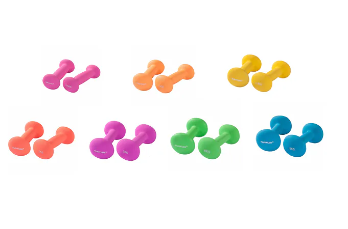Sada 2 neoprénových činiek s výraznou, rozoznateľnou farbou. Skvelé pre zábavné aj funkčné cvičenia. Ideálne pre domáce použitie na posilnenie rôznych svalových skupín. Vhodné aj pre aerobik, gymnastiku alebo skupinové fitness cvičenie. Hrubá horná vrstva je vyrobená z mäkkej gumy a poskytuje pevné a pohodlné uchopenie.