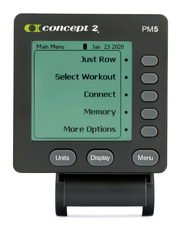Masívnejší veslársky trenažér CONCEPT2 RowErg PM5 vyšší využíva na reguláciu záťaže odpor vzduchu, ktorá sa ovláda posuvnou pákou, umiestnenou z boku stroja. Odpor stroja je priamo úmerný sile, ktorou sa na stroj pôsobí - čím viac sily vynakladáte, tým výdatnejší je tréning. Svoje výsledky môžete sledovať na prehľadnom displeji PM5, ktorý je na baterky (súčasťou monitora).