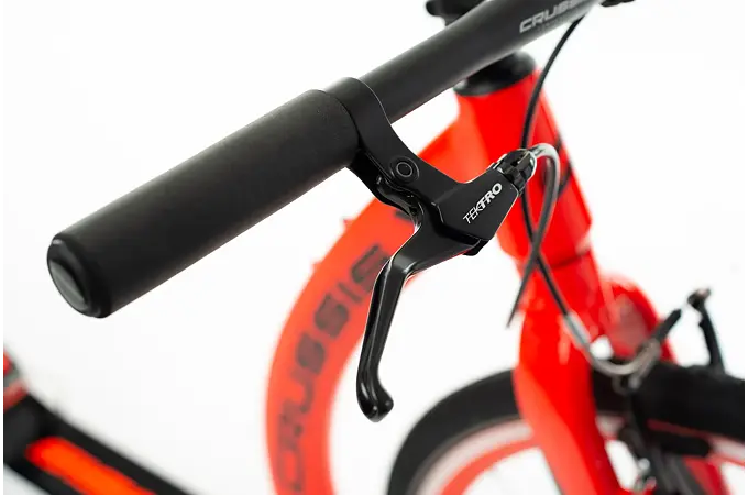 Pro co nejpohodlnější jízdu je pak koloběžka vybavena spolehlivými čelisťovými brzdami TEKTRO, zvonkem na levé páce a pohodlnými silikonovými gripy.